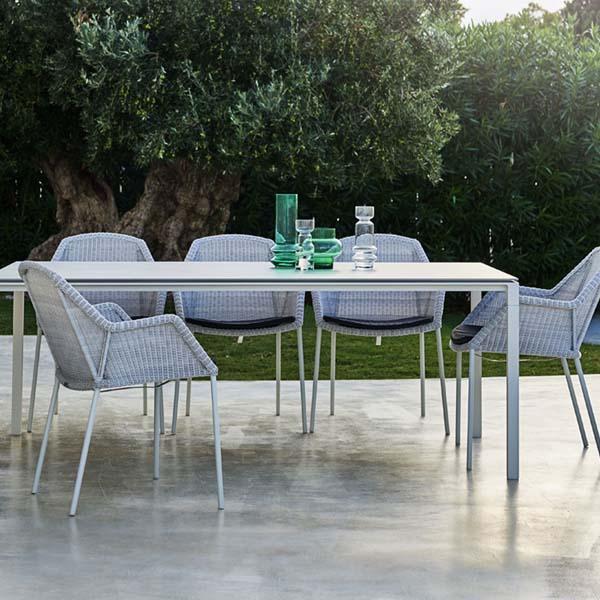 The Breeze dining chair is designed by the dynamic Danish duo STRAND+HVASS. The Outdoor chair combines beautiful and elegant lines with great comfort and requires a minimum of maintenance. The angled legs, as well as the meticulously woven lines all contribute to the end product; a chair that not only looks great, but also doubles as an incredibly comfortable dining chair. Combine the luxurious Breeze chair with for example a minimalistic Pure table, to create a stylish, yet comfortable, modern dining area.