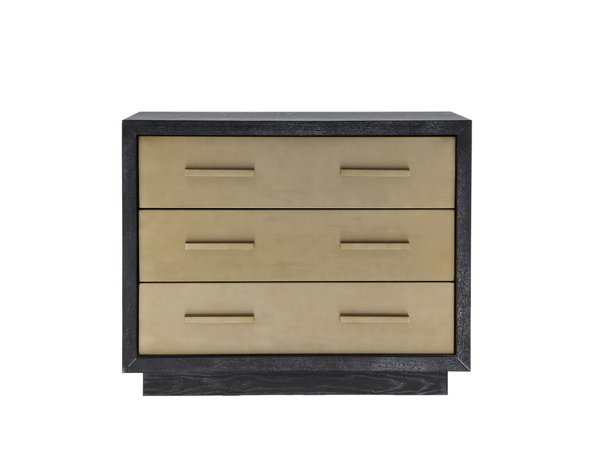 Ebony Cerused Ash. Brushed Brass Handles and Front of Drawers.