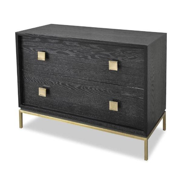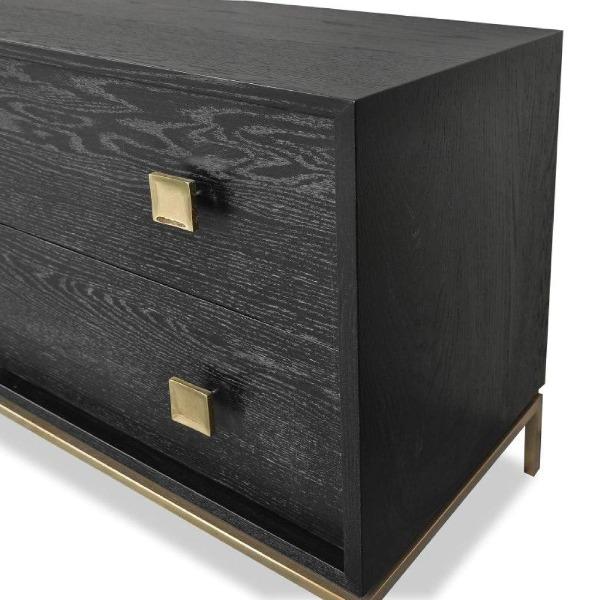 Made with a wenge oak veneer top with legs and handles, contrasting beautifully against its polished brass legs & handles.
