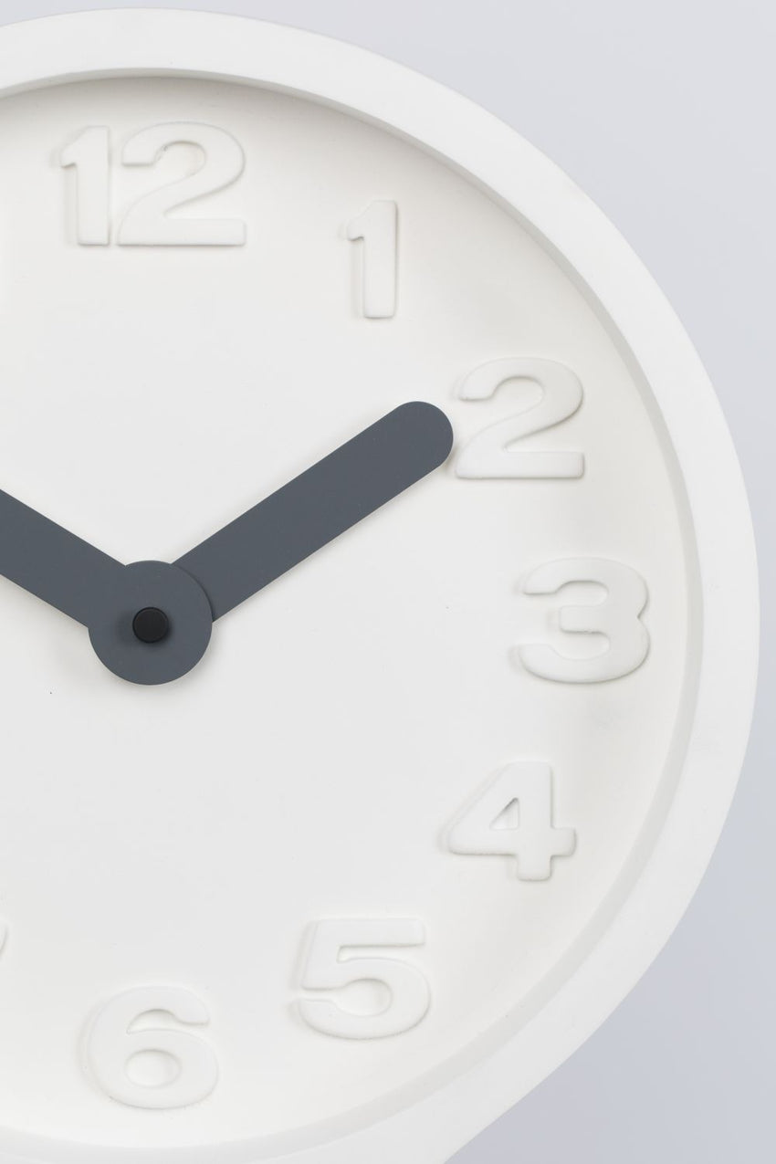 Material: White resin frame with dark grey powder coated aluminium hands and pendulum.