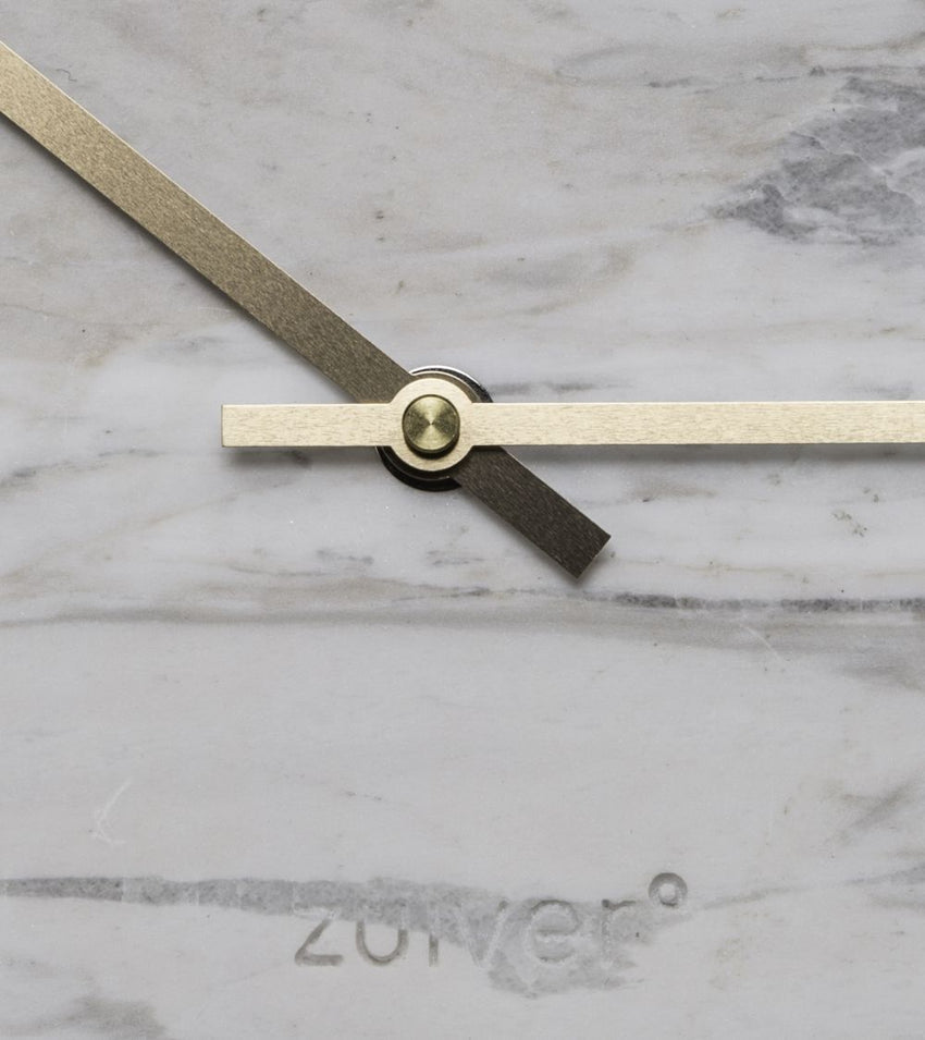 Material: 100% naturally white marble clock with golden aluminium hands and hanger.