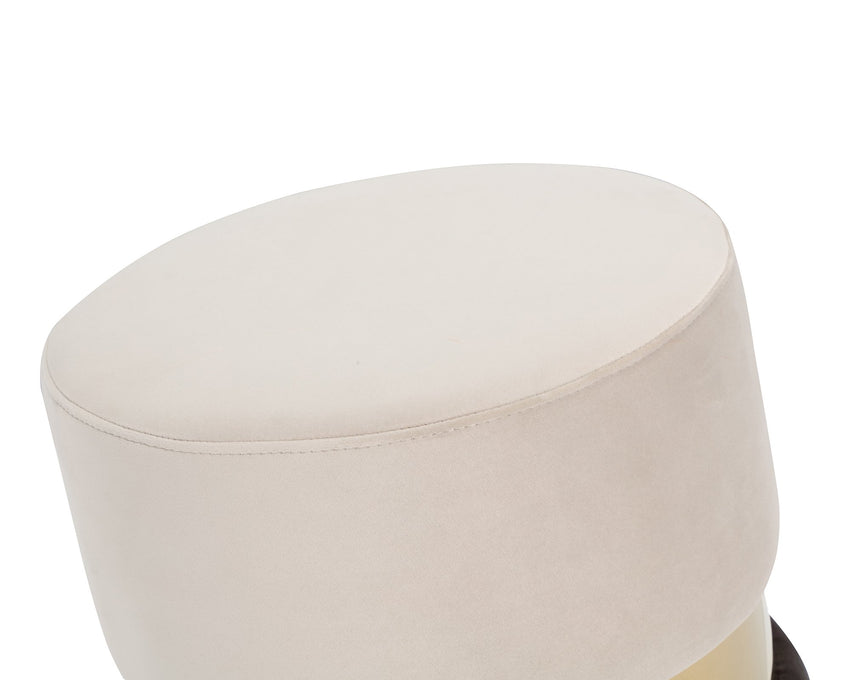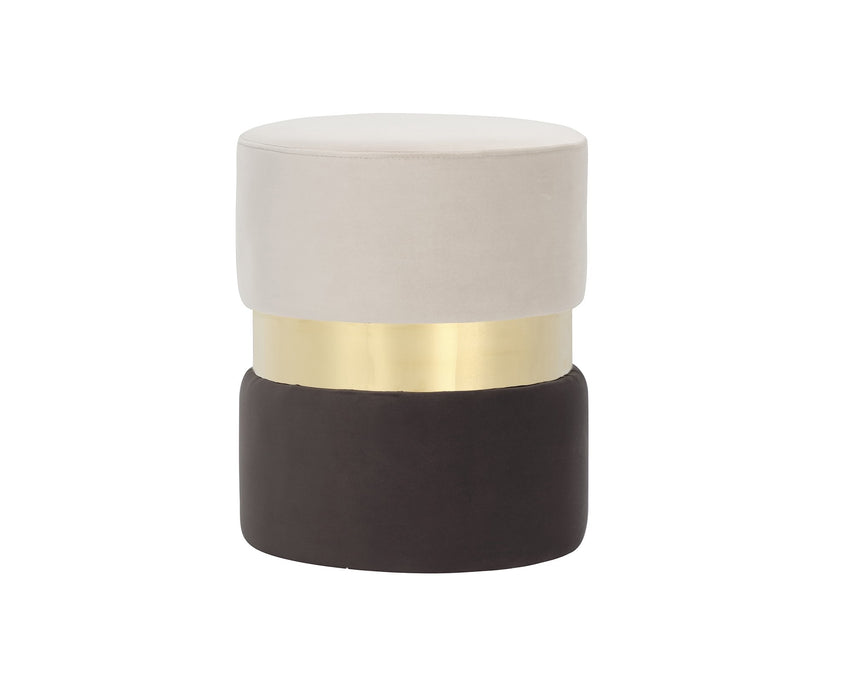 Boasting a luxurious design, the eye catching Lucien Stool features a sleek, modern design which will complement any contemporary interior space. Upholstered in a two tone Kaster Pebble and Slate Velvet fabric and finished with a polished brass band, the Lucien is the epitome of modern luxury.