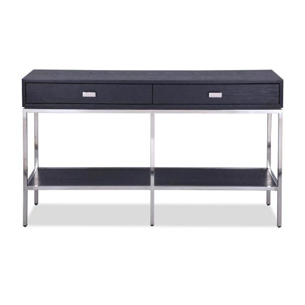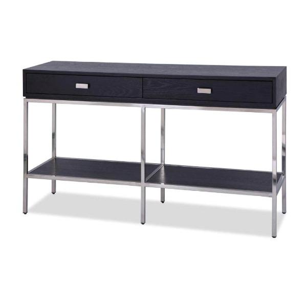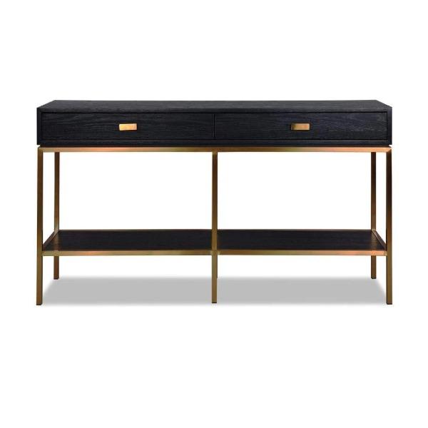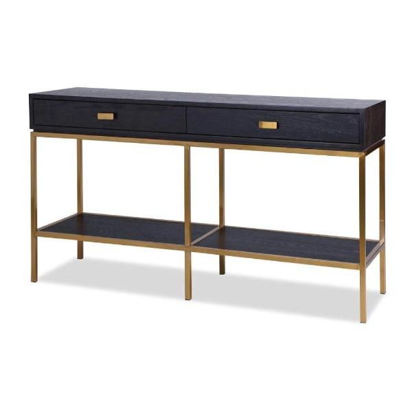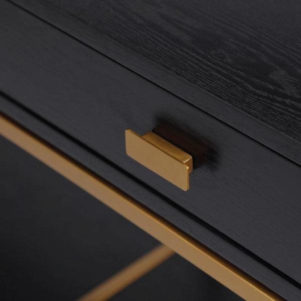 Black Ash Veneer Top & Shelf Brushed Brass Metal Handles, Frame & Legs