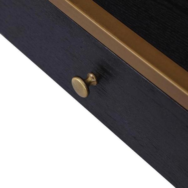 Available in both stainless steel or brass finishes, there's a Rivoli bedside table to suit your interior no matter the colour scheme. Featuring a coordinating frame, legs and drawer handles that contrast against its black ask wood top.