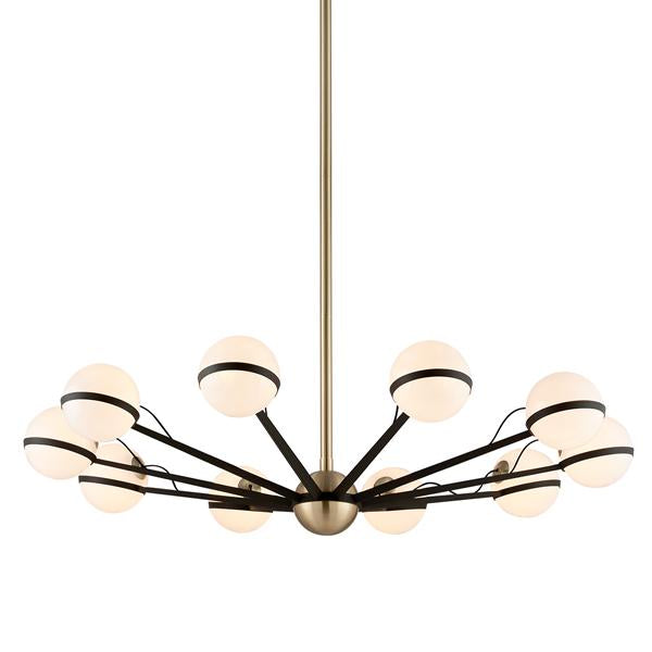 Hudson Valley Lighting Ace, 10lt Chandelier Hand-Worked Iron Gloss Opal Glass