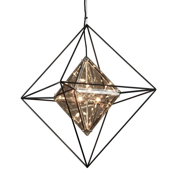Hudson Valley Lighting Epic, 6lt Pendant Hand-Worked Iron Topaz Glass