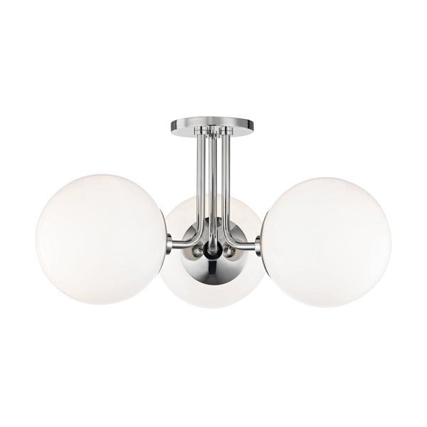 Hudson Valley Lighting Stella, 3 Light Semi Flush Steel White Glass