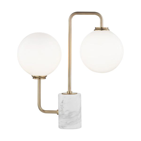 Hudson Valley Lighting Mia, 2 Light Table Lamp With A Marble Base Steel White Glass