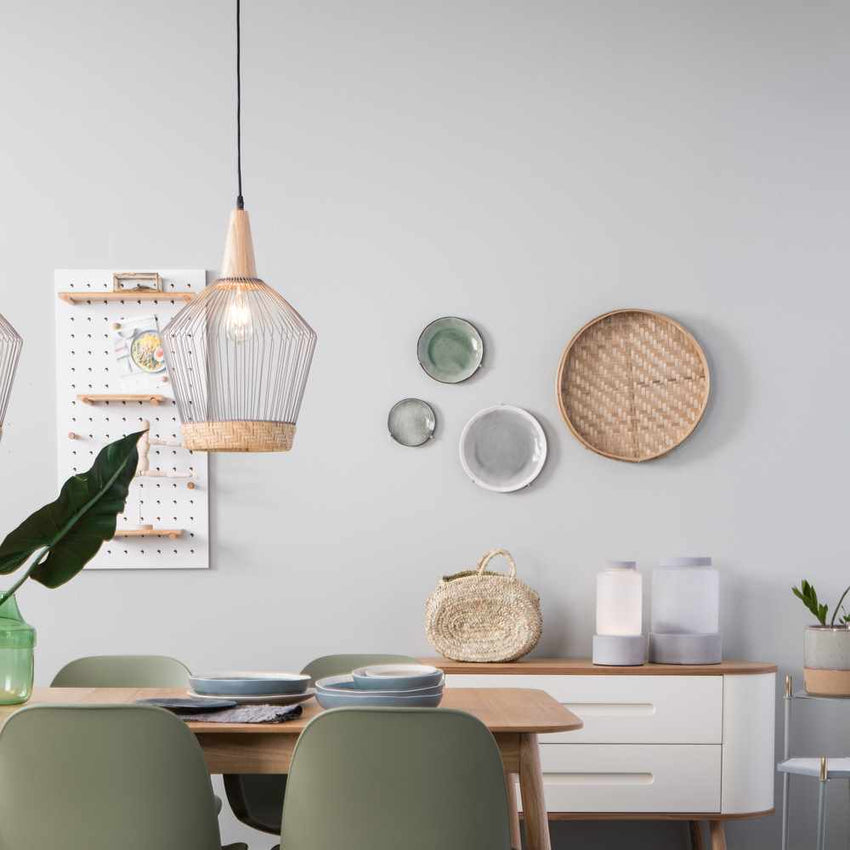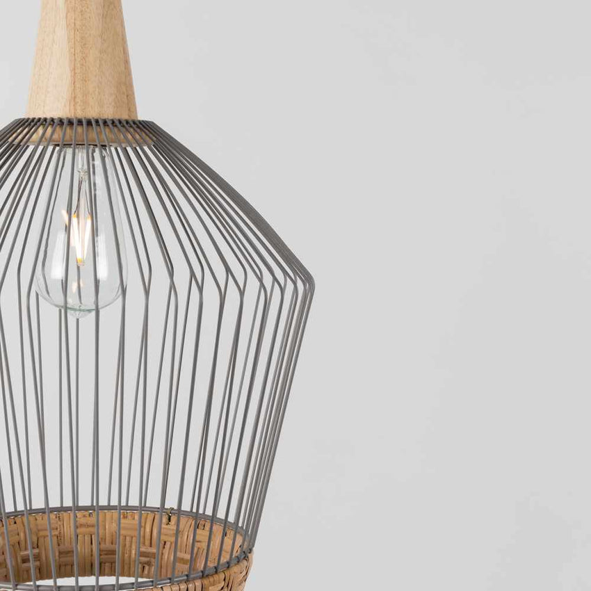 Inspired by birdcages, the Zuiver Birdy Pendant Lamp combines an elegant rattan rim with a metal cage.