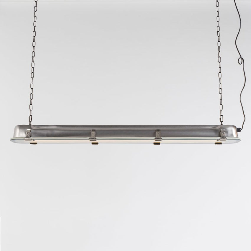 We like the industrial look of G.T.A. and love the idea of this lamp hanging above a designer dining table.
