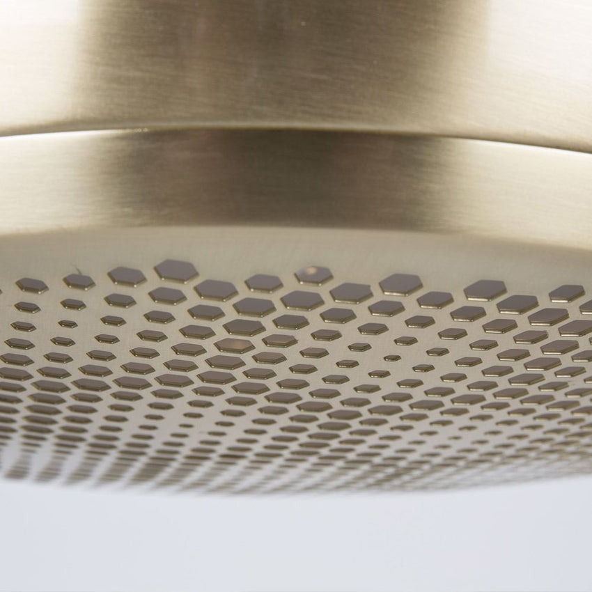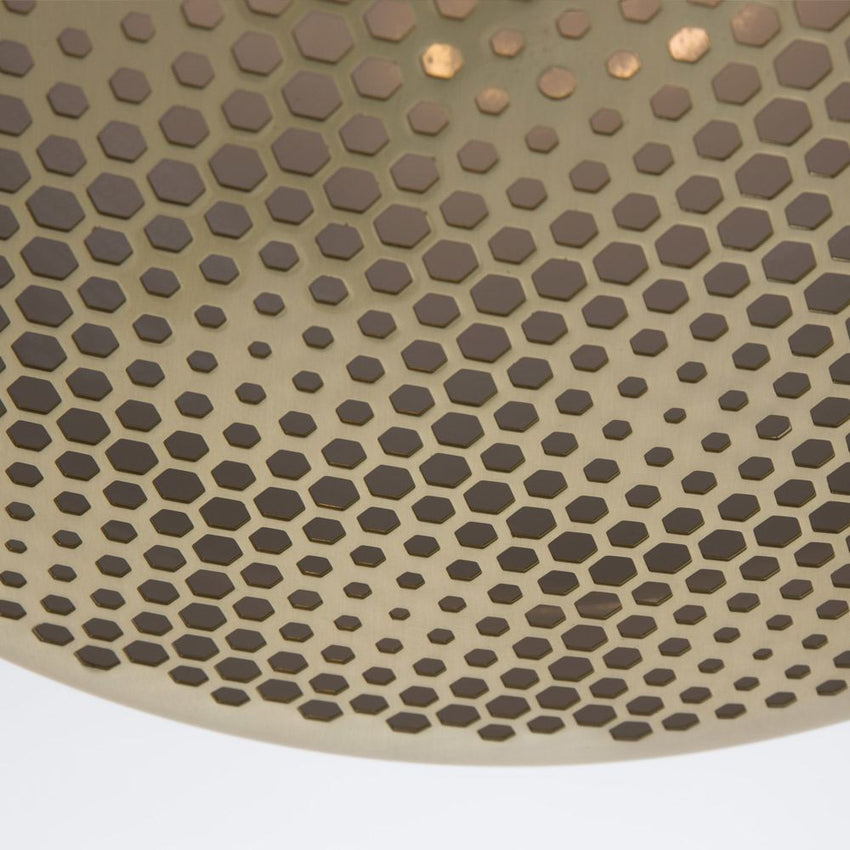 Hand spun in a choice of brass plated or white powder coated metal finishes, this E27 pendant light features a striking geometric diffuser plate of honeycomb perforations.