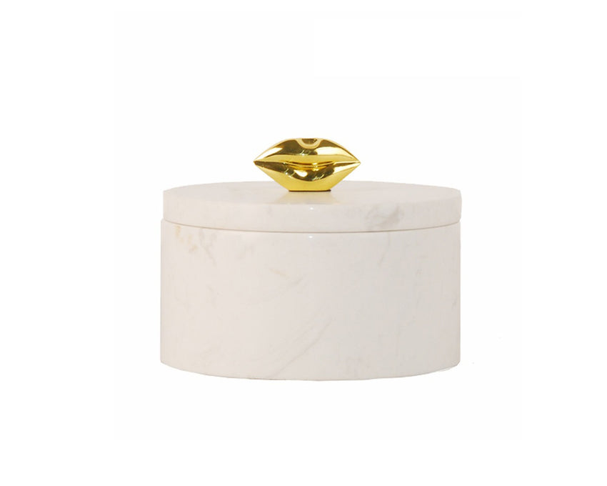The perfect accessory to complement any bedroom interior; this stunning white marble storage jar with a zinc alloy finish is ideal for housing all of your dressing table clutter.