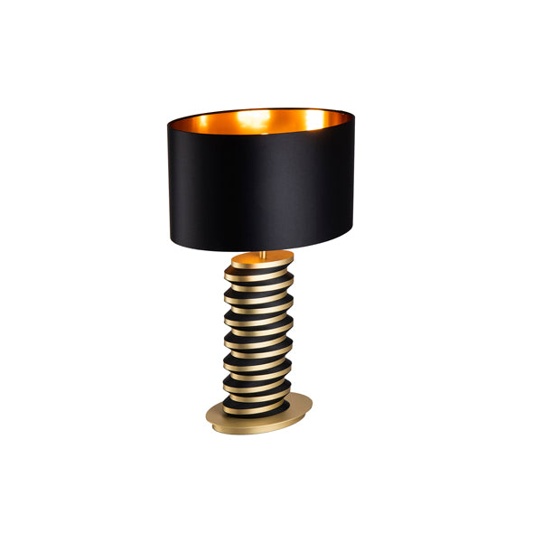 An intricate body in gold and black makes for a chic and sophisticated look. Rounded stacked discs in alternating colours makes for an eye-catching and space redefining first impression.