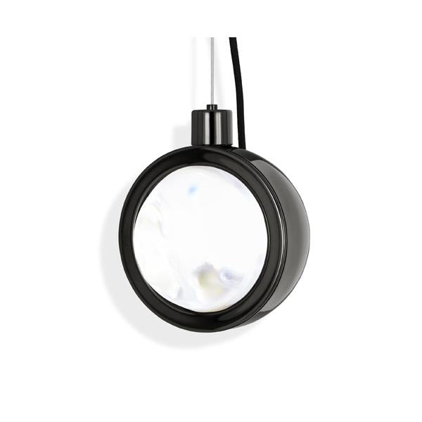 Framed in a plated stainless-steel surround, Spot Pendant is a massively thick glass lens designed to refract the light of integrated LEDs. Available in high-shine copper and glossy black. 6.3W integrated LED. Not dimmable
