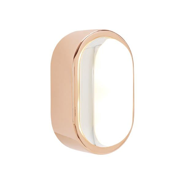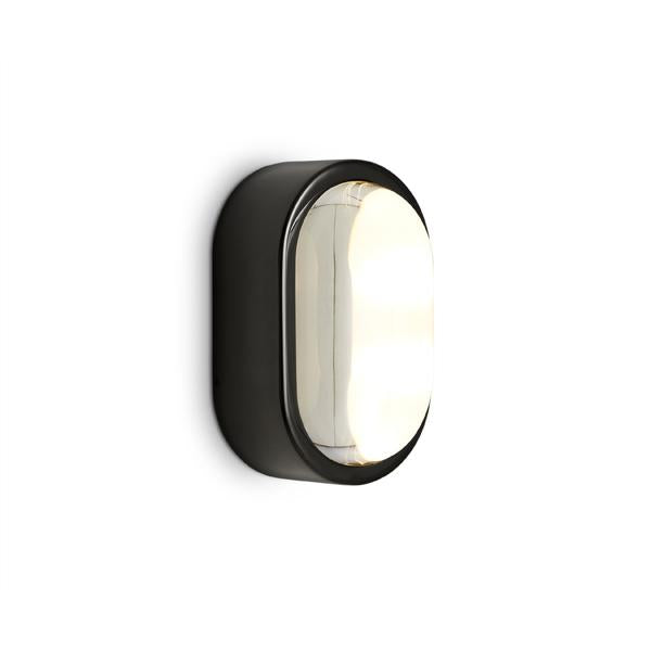 Framed in a plated stainless-steel surround, Spot Surface is a massively thick glass lens designed to refract the light of integrated LEDs. Spot is IP44 rated as a wall light. Available in high-shine copper and glossy black. 5.5W integrated LED. Not dimmable.