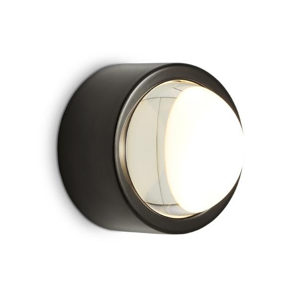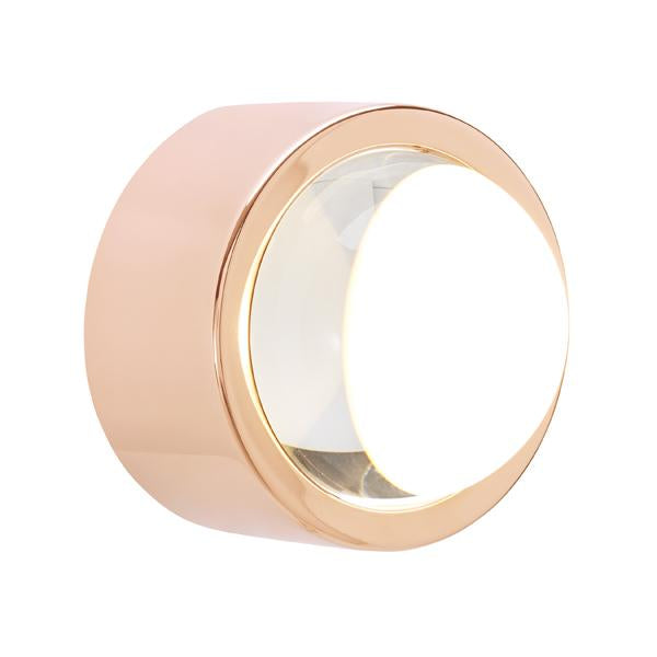 Framed in a plated stainless-steel surround, Spot Surface is a massively thick glass lens designed to refract the light of integrated LEDs. Spot is IP44 rated as a wall light. Available in high-shine copper and glossy black. 3.5W integrated LED. Not dimmable.