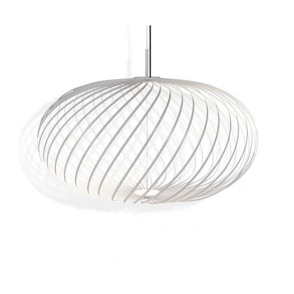 Spring is a series of three pendant lamps made up of stainless-steel strips. Pliant ribbons of stainless steel have been arranged like a whisk around our custom-made dimmable Tom Dixon LED disc. The semi-transparent shape thus created can be adjusted to a variety of silhouettes - from a flat arrangement reminiscent of a spirograph drawing, to a flying saucer configuration and on to a fuller shape akin to a pumpkin.
