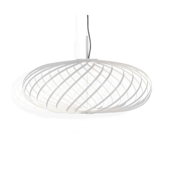 Spring is a series of three pendant lamps made up of stainless-steel strips. Pliant ribbons of stainless steel have been arranged like a whisk around our custom-made dimmable Tom Dixon LED disc. The semi-transparent shape thus created can be adjusted to a variety of silhouettes - from a flat arrangement reminiscent of a spirograph drawing, to a flying saucer configuration and on to a fuller shape akin to a pumpkin.