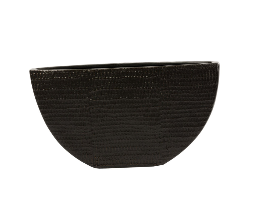 Boasting a textured finish, this stunning bowl shaped black ceramic vase will provide a striking contrast within any interior.