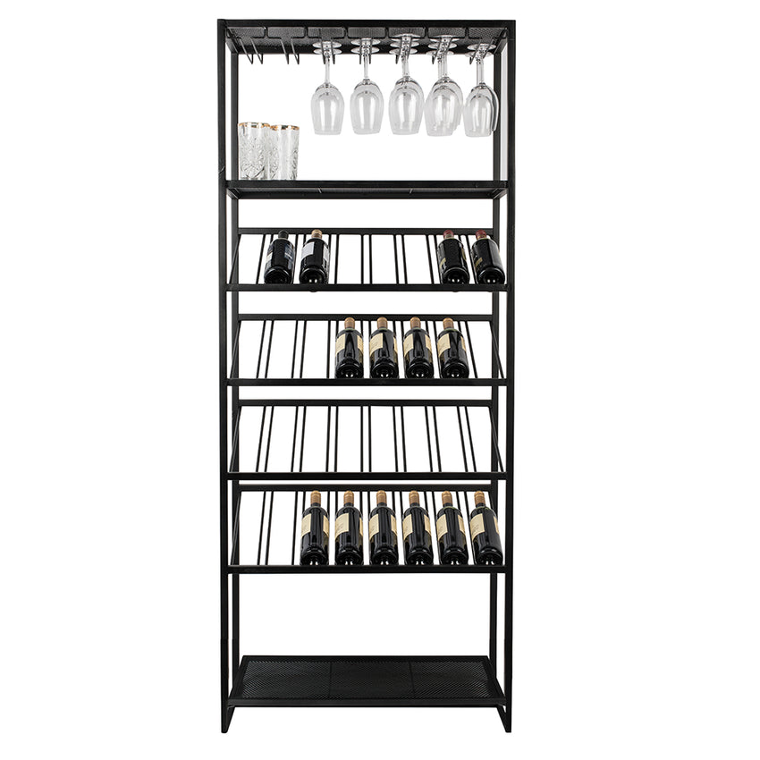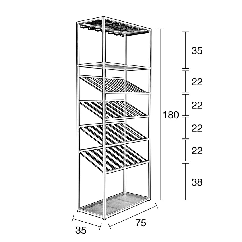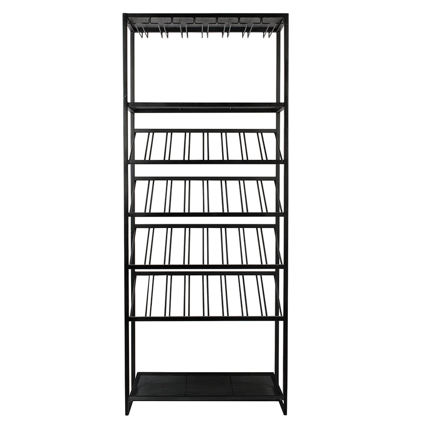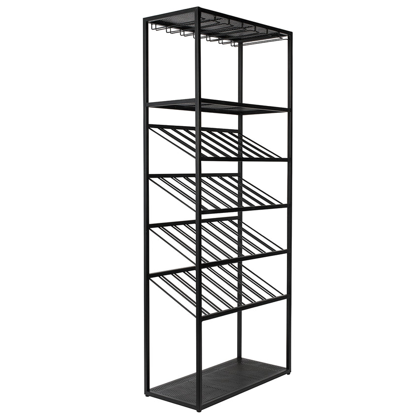 Choose the airy openness and perforated shelves of the Zuiver Cantor Black Iron Wine Shelf.