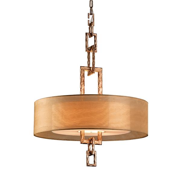 Hudson Valley Lighting Link, 4lt Pendant Hand-Worked Iron Hardback Organza Fabric Shade